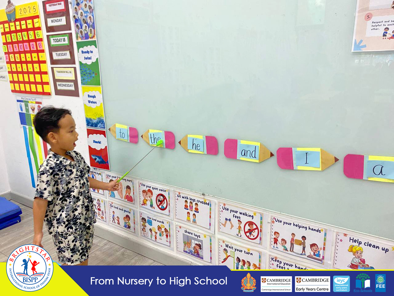 ប្អូនៗសិស្សានុសិស្សនៅសាលាអន្តរជាតិប្រាយស្តាររបស់យើង កំពុងសិក្សាចាប់យកនូវបំណិនសូរស័ព្ទអក្សរសំខាន់ៗដោយផ្តោតតាមរយៈការស្តាប់ ការអនុវត្តបញ្ចេញសំឡេងច្បាស់ៗ ការគូសផ្តាមអក្សរ ការស្គាល់ពាក្យមូលដ្ឋានដែលពេញនិយមក្នុងការប្រើប្រាស់ និងការសិក្សាស្គាល់សូរដំបូងរបស់ពាក្យ។ ទាំងនេះគឺជាគ្រឹះសិក្សាមូលដ្ឋានដ៏សំខាន់សម្រាប់ជួយឲ្យសិស្សមានទំនុកចិត្តលើខ្លួនឯង ក៏ដូចជាស្រឡាញ់នូវបំណិនអំណានពេញមួយជីវិត។