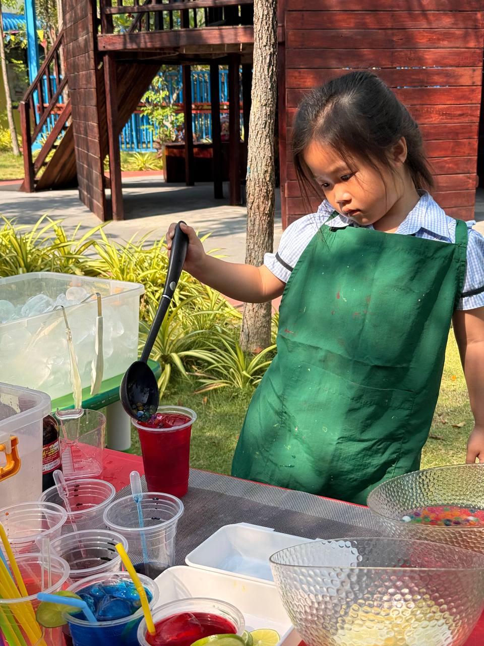 Our EY classrooms continue to provide meaningful, hands-on learning experiences. From creating their own kinetic sand to taking part in a fruit tea shop role-play, our learners explore, create and work together in ways that support creativity and bring learning to life.